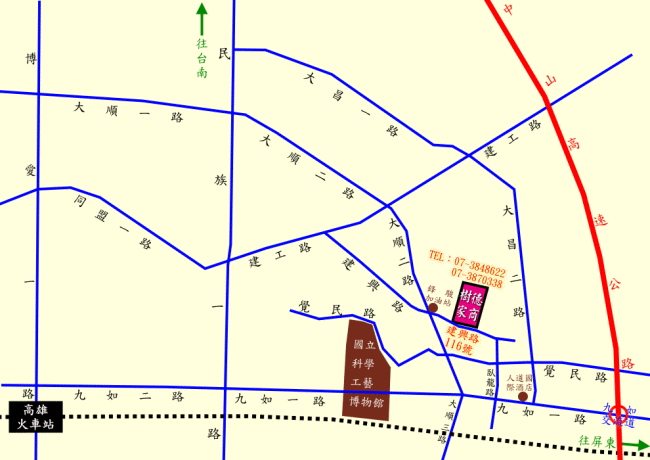 ○建興路口下車:0南、0北、37號、81號 ●正興國小下車:33號 ○覺民路下車:76號、77號 ●義華路口下車:217號 ○大昌二路口下車:79號 ●大順陸橋下車:60號、73號、201號
